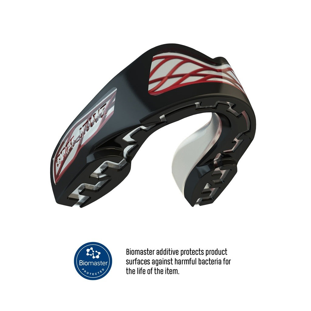 Der SAFEJAWZ Nitro Zahnschutzkombiniert kompromisslose Sicherheit mit einem markanten Look. Das kraftvolle Schwarz-Rot-Design steht für Power, Präzision und Performance – ideal für Muay Thai, MMA, Boxen und Kickboxen.