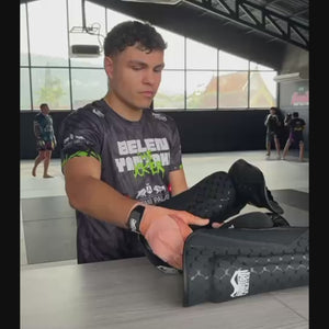 Durch die starke Polsterung an Schienbein und Spann wird die Aufprallenergie zuverlässig abgefedert, sodass du härter trainieren kannst, ohne Kompromisse bei der Sicherheit einzugehen. Die verstärkten Klettverschlüsse fixieren die Schoner stabil am Bein und verhindern ein Verrutschen – auch bei intensiven Kombinationen. Dank der ergonomischen Form passen sich die Schützer perfekt an und bieten dir Komfort bei gleichzeitig maximaler Stabilität.