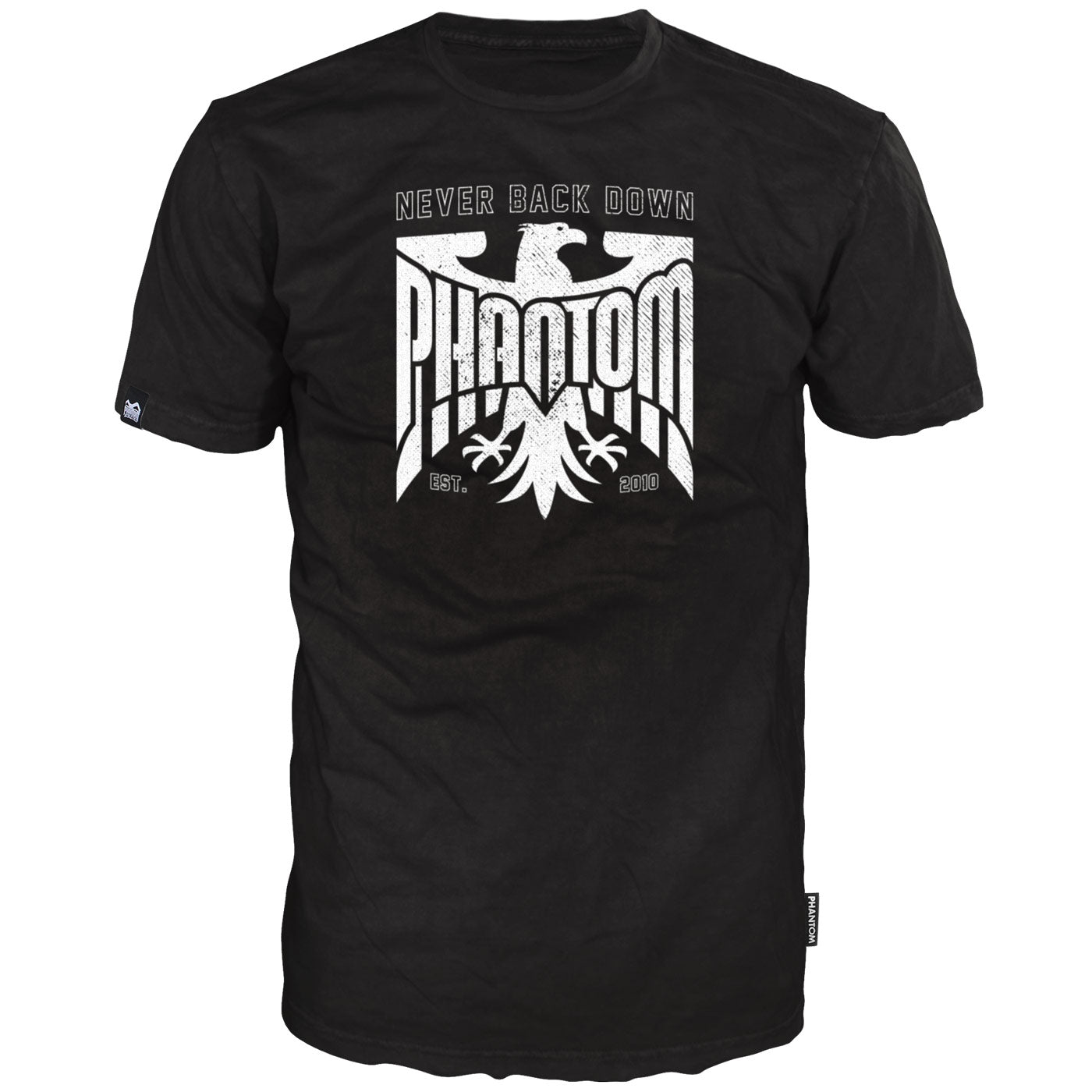 Phantom Fight-Shirts im GERMANY Look mit NEVER BACK DOWN Schriftzug auf der Brust. Perfekt für dein MMA, Muay Thai oder Box Training.