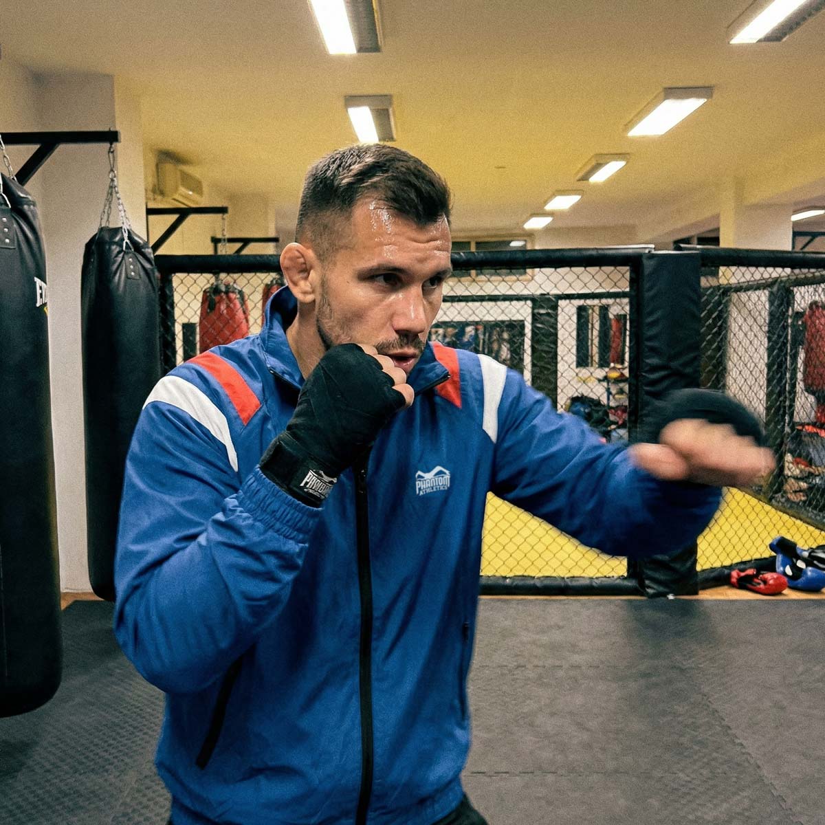 Die Phantom DMC Trainingsjacke im Team Serbia Look – in Blau kombiniert sportliche Funktion mit klassischem Retro-Stil. Sie wurde speziell für Kampfsportler entwickelt, die beim MMA, Boxen, Muay Thai oder Fitness-Training Wert auf Bewegungsfreiheit, Komfort und Style legen.